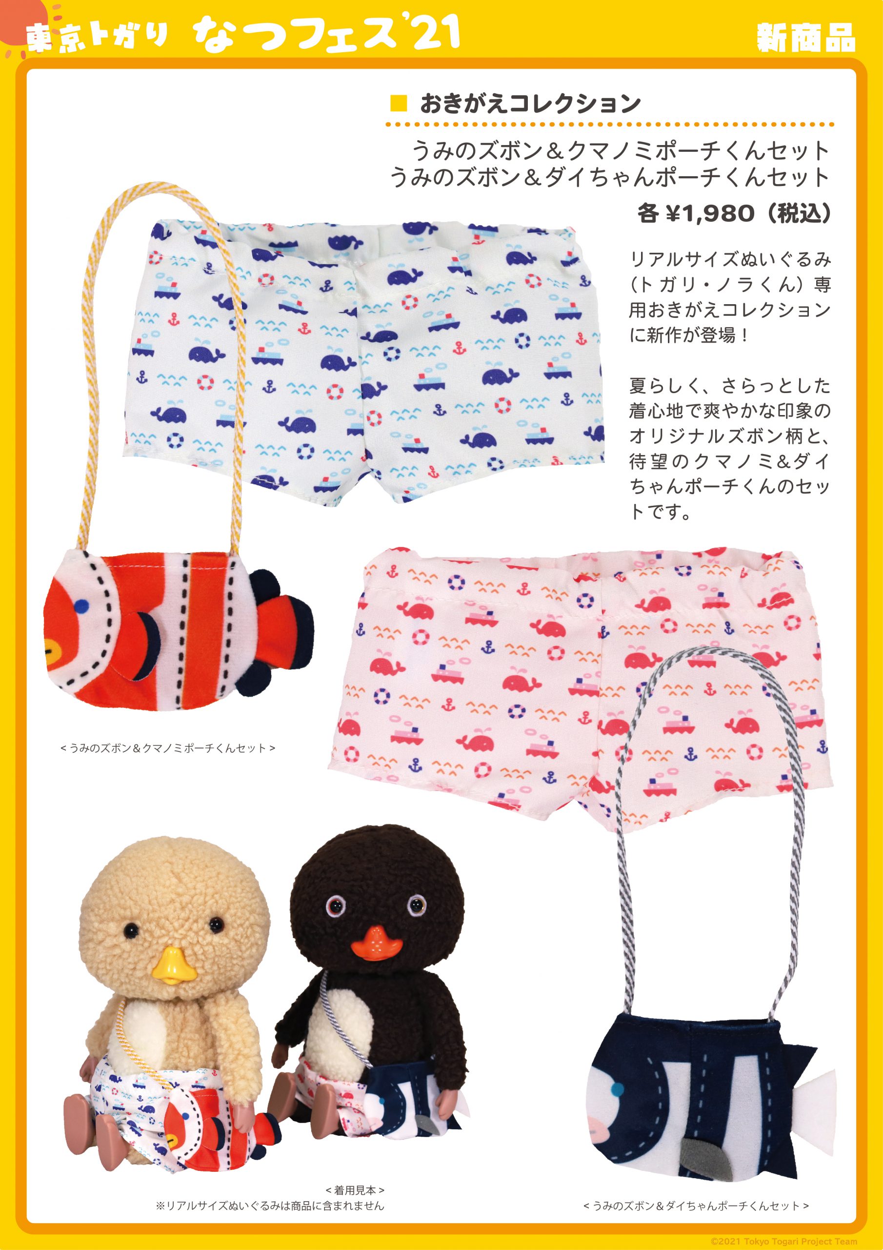 お待たせしておりました、新商品のボールチェーンぬいぐるみ全4種(おでかけトガリ&ノラくん、ゆあがりトガリ&ノラくん)は、「東京トガリ なつフェス’21」開催各店への発送を開始いたしました。
